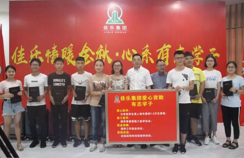 据了解,本次资助采取定额方式,佳乐集团为受助学生在校学习期间每人每年提供1.5万元资助;寒暑假期间佳乐集团可为受资助学生提供勤工俭学机会;大学毕业后,如受资助学生愿意到佳乐集团工作,集团可提供相应工作岗位;如本科毕业后,受资助大学生进一步深造读研,佳乐集团将持续提供资助。此外,在活动中,佳乐集团还向学子赠送纪念品。