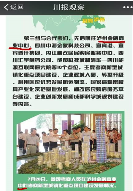 省委全委会视察省重点项目泸州金融商业中心