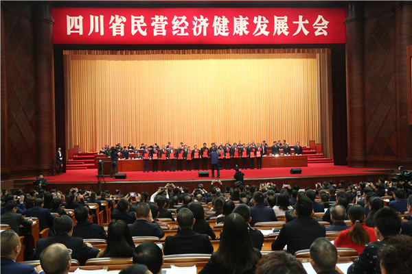 11月20日,四川省民营经济健康发展大会在成都锦江大礼堂隆重召开。省委、省人大常委会、省政府、省政协有关领导、各市州党委主要负责同志、党委或政府分管负责同志、民营办主要负责同志、民营企业家代表、商协会代表、省直机关有关部门共约2000人参会。