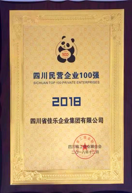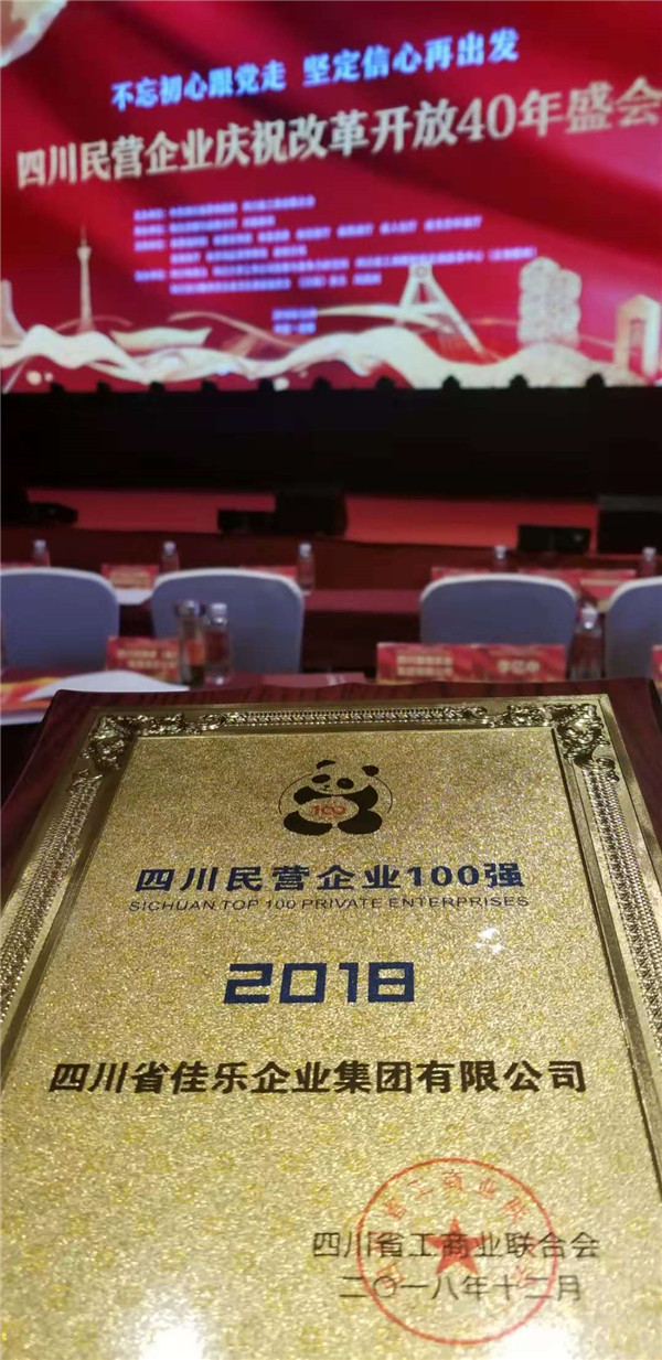 四川省佳乐企业集团有限公司荣获“四川民营企业100强”称号。