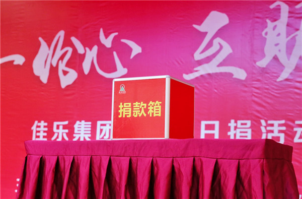 “只要人人都献出一点爱,世界将变成美好的人间......”伴随着暖情的歌声,佳乐集团员工依次走上舞台,向红色爱心捐款箱内捐出自己的一日工资或一日零花钱。
