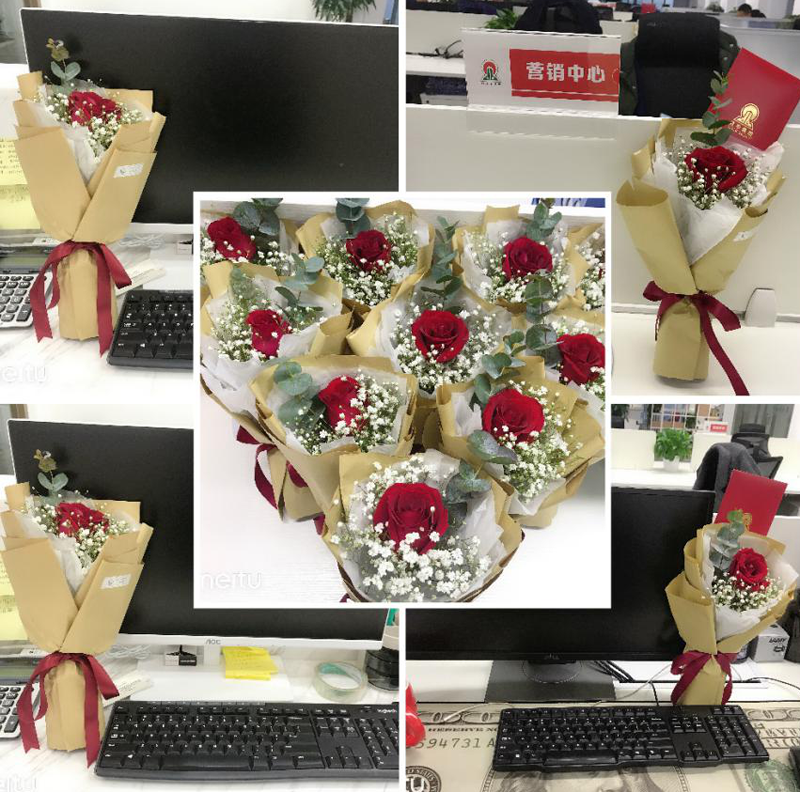 佳乐集团职业女性作为“半边天”,巾帼不让须眉,奉献着自己的智慧和汗水,成为佳乐最美的风景线。今天,在这个特殊的日子,佳乐集团领导早早在公司门口守候,为每一位前来上班的女员工献上鲜花及礼物,送上真挚的节日祝福。