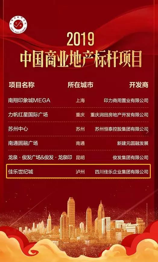 泸州金融商业中心【佳乐世纪城】荣膺2019中国商业地产标杆项目