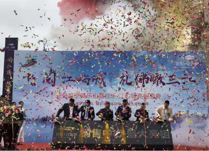 10月20日上午9点,主题为“飞阅江屿城·礼佛瞰三江”直升机空降乐山暨佳乐·江屿城亮相盛典活动,在万众瞩目中正式拉开帷幕。集团副总裁贺军先生为此次亮相活动致辞,详细解读了佳乐集团的 经营理念、开发理念和战略规划,同时也表达了对乐山未来人居前景的美好祝福,让所有来宾对佳乐集团以及佳乐·江屿城项目有了更加深入的了解。