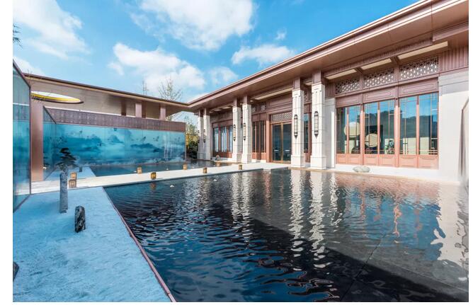以“东方人居”为核,匠心为法,融汇东方山水哲学,以自然诗意的文化传承,取中式园林高低曲折之趣,间以池沼花木。