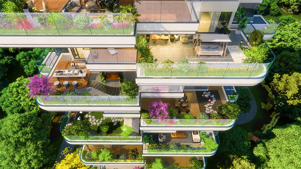 由西班牙的顶级建筑设计团队主持设计,将以全新理念打造“楼上花园,楼下森林”的活力生态住宅群,多层次立体绿化体系,阔达数十平方米的空中花园,于双层挑高庭院之中,户户独享一方阳光,饱览四季佳景,品味田园牧歌生活。